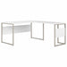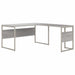 60W x 30D x 30H L Shaped Table Desk with Metal Legs presents a practical, long-lasting workspace for the modern professional. Durable L Shaped Desk surface supports materials and equipment with a weight capacity of 200 pounds. Desktop includes three built-in wire management grommets to keep cords and cables out of the way. Open metal leg design and finished privacy panel allow the corner desk to look great facing any direction. Thoughtfully designed for maximum stability and includes hardware to anchor the modern computer desk to a wall. Available in your choice of Black Walnut, Modern Hickory, Platinum Gray, Storm Gray and White finish options. Bush Business Furniture's commitment to safety includes rigorous testing that meets or exceeds ANSI/BIFMA standards. Backed by a 10 Year Manufacturer's Warranty. American made with U.S. and imported parts. Complete your office with a coordinating Hybrid File Cabinet, Storage Cabinet and Bookcase (sold separately).