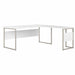 72W x 36D x 30H L Shaped Table Desk with Metal Legs presents a practical, long-lasting workspace for the modern professional. Durable L Shaped Desk surface supports materials and equipment with a weight capacity of 200 pounds. Desktop includes four built-in wire management grommets to keep cords and cables out of the way. Open metal leg design and finished privacy panel allow the corner desk to look great facing any direction. Thoughtfully designed for maximum stability and includes hardware to anchor the modern computer desk to a wall. Available in your choice of Black Walnut, Modern Hickory, Platinum Gray, Storm Gray and White finish options. Bush Business Furniture's commitment to safety includes rigorous testing that meets or exceeds ANSI/BIFMA standards. Backed by a 10 Year Manufacturer's Warranty. American made with U.S. and imported parts. Complete your office with a coordinating Hybrid File Cabinet, Storage Cabinet and Bookcase (sold separately).