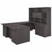 Bundle includes: 72W x 36D Executive Desk, 72W x 24D Credenza Desk, 42W Desk Bridge, 16W 3 Drawer File Cabinet, 16W 2 Drawer File Cabinet, 72W Hutch. Wraparound U Shaped Desk surface offers plenty of room for materials and has built-in wire management grommets to keep cords and cables out of the way. Durable thermally fused laminate desktop resists everyday damage like scratches and stains while supporting up to 200 pounds. Filing cabinets fit underneath the Office Desk for easy access to paperwork and supplies; drawers lock to protect sensitive documents and personal items. Executive Desk with Storage is finished on all sides to look great facing any direction. File drawers open on smooth full-extension ball bearing slides and accept legal, letter and A4-size paperwork. Hutch combines open and closed storage areas to organize supplies while displaying decorations and personal mementos. Available in your choice of stylish Black Walnut, Sand Oak, Modern Hickory and Storm Gray finishes with Light Silver hardware. Tested to meet ANSI/BIFMA quality standards for safety and performance. Backed by the Bush Business Furniture 10 Year Manufacturer's Warranty; American made with U.S. and imported parts.