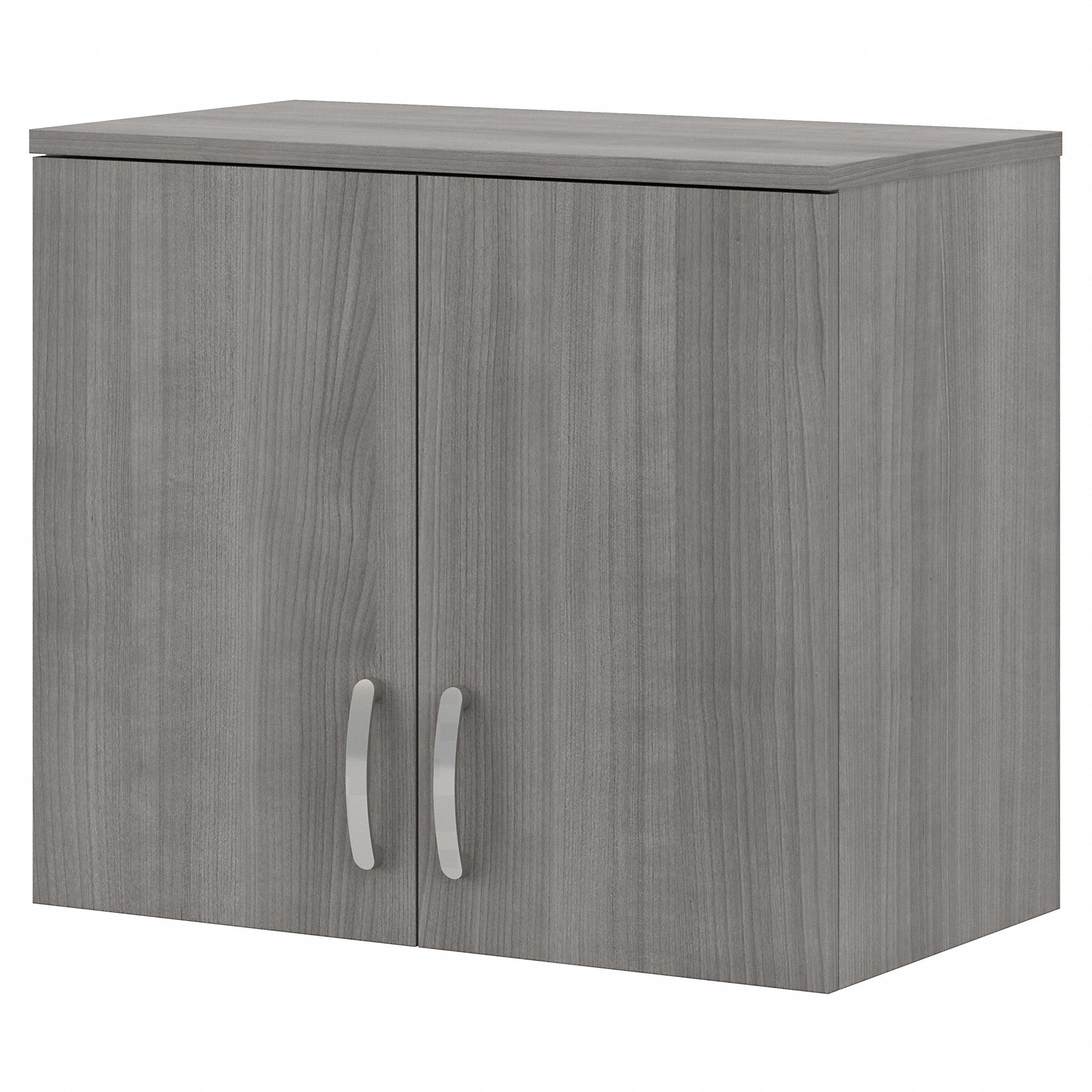 28W x 16D x 24H Closet Wall Cabinet with Doors and Shelves is a great way to organize miscellaneous accessories. Wall mounted cabinet contains one fixed shelf and one adjustable shelf for flexible storage. Cabinet doors feature smooth Euro-style hinges for an effortless open and close. Studs should be mounted 16 inches apart for best use; installation may require additional tools. Wall storage cabinet's total weight capacity is 30 pounds. Commercial quality design can endure years of use in your bedroom or anywhere in the home. Available in your choice of Storm Gray, Platinum Gray and White finish options with Brushed Nickel hardware. Tested to meet or exceed ANSI/BIFMA quality standards for safety and performance. Backed by the Bush Business Furniture 10 Year Manufacturer's Warranty. See the full collection of modular storage solutions to build the perfect organization set for your space.