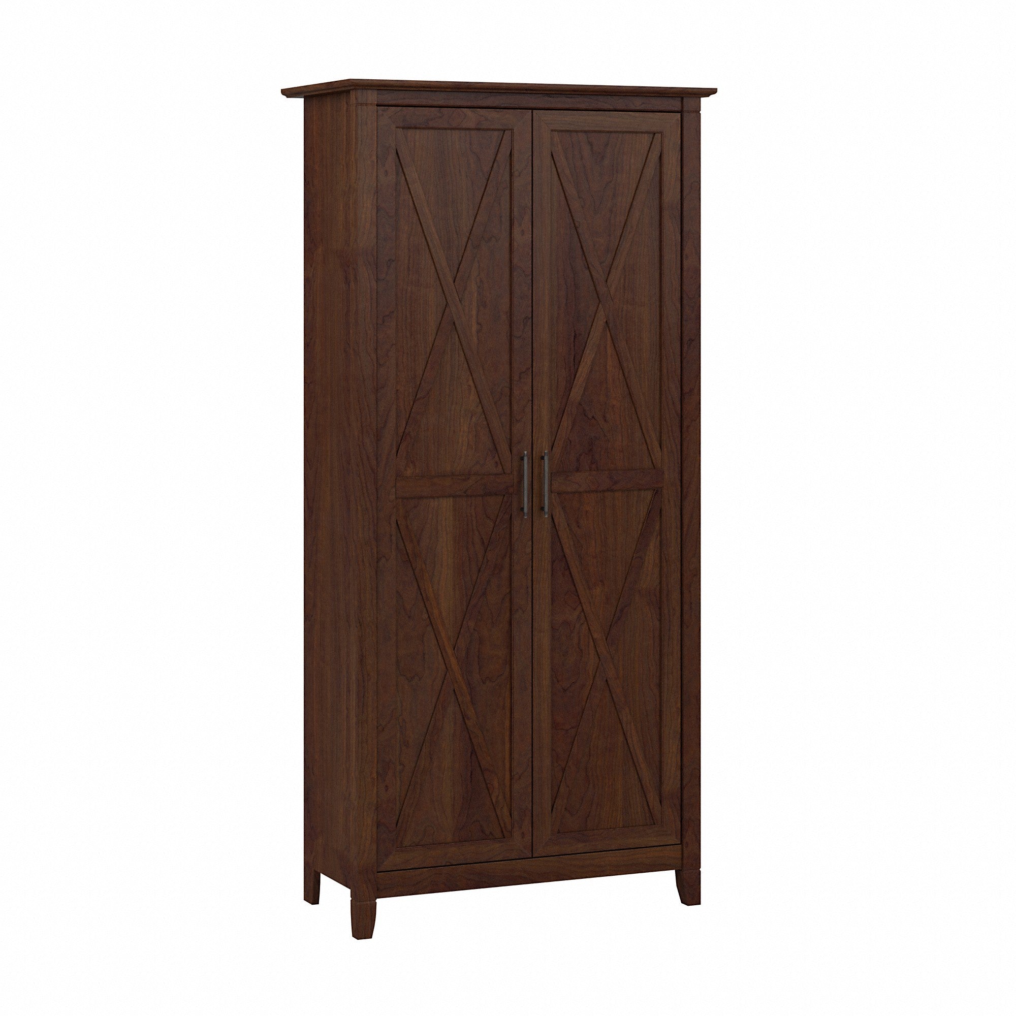 32W x 16D x 66H Tall Storage Cabinet with Doors is an ideal way to organize virtually any work or living space. Tall Cabinet contains two fixed shelves and three adjustable shelves for flexible storage. Each shelf supports up to 25 pounds. Thoughtfully designed for maximum stability and includes hardware to anchor the large cabinet to a wall. Tall accent cabinet's doors utilize smooth Euro-style hinges for an effortless open and close. Post leg design and unique X pattern accents convey a casual look that works well with cottage, coastal and modern farmhouse style. Available in your choice of slightly distressed Washed Gray, Bing Cherry, Pure White Oak and Cape Cod Gray finish options. Bush Furniture's commitment to safety includes rigorous testing that meets or exceeds ANSI/SOHO standards. Backed by a 1 Year Manufacturer's Warranty. See the full Key West Collection for coordinating items available, including storage, home office and bathroom furniture.