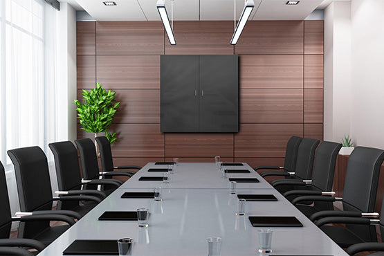 Ghent's Whiteboard Conference Cabinet is a versatile tool that offers the freedom to collect and brainstorm information while providing privacy that is much needed in office environments. The double door cabinet opens to reveal a magnetic porcelain whiteboard that resists ghosting, staining or scratching when taking notes and collecting ideas. When you are finished with your meeting or brainstorming session, just swing the doors shut to hide information. With appointments happening back-to-back, the adaptable conference cabinet gives you the ability to conceal private notes and come back to them when it is most convenient for you. Cabinet doors are covered with a high-quality mahogany laminate surface on the outside and a self-healing cork bulletin surface on the inside that masks pin holes, made by tacks, pins or staples, within hours of removal. The cabinet doors are paired with sturdy piano hinges and open to reveal nearly 8' of posting and writing surfaces. When closed, you can store markers and accessories in the cabinet, keeping everything you need within arms reach. Each cabinet is shipped to you in Ghent's worry-free packaging, designed specifically for shipping conference cabinets. Ghent's Whiteboard Conference Cabinet carries a 10-year warranty and is made in the USA.