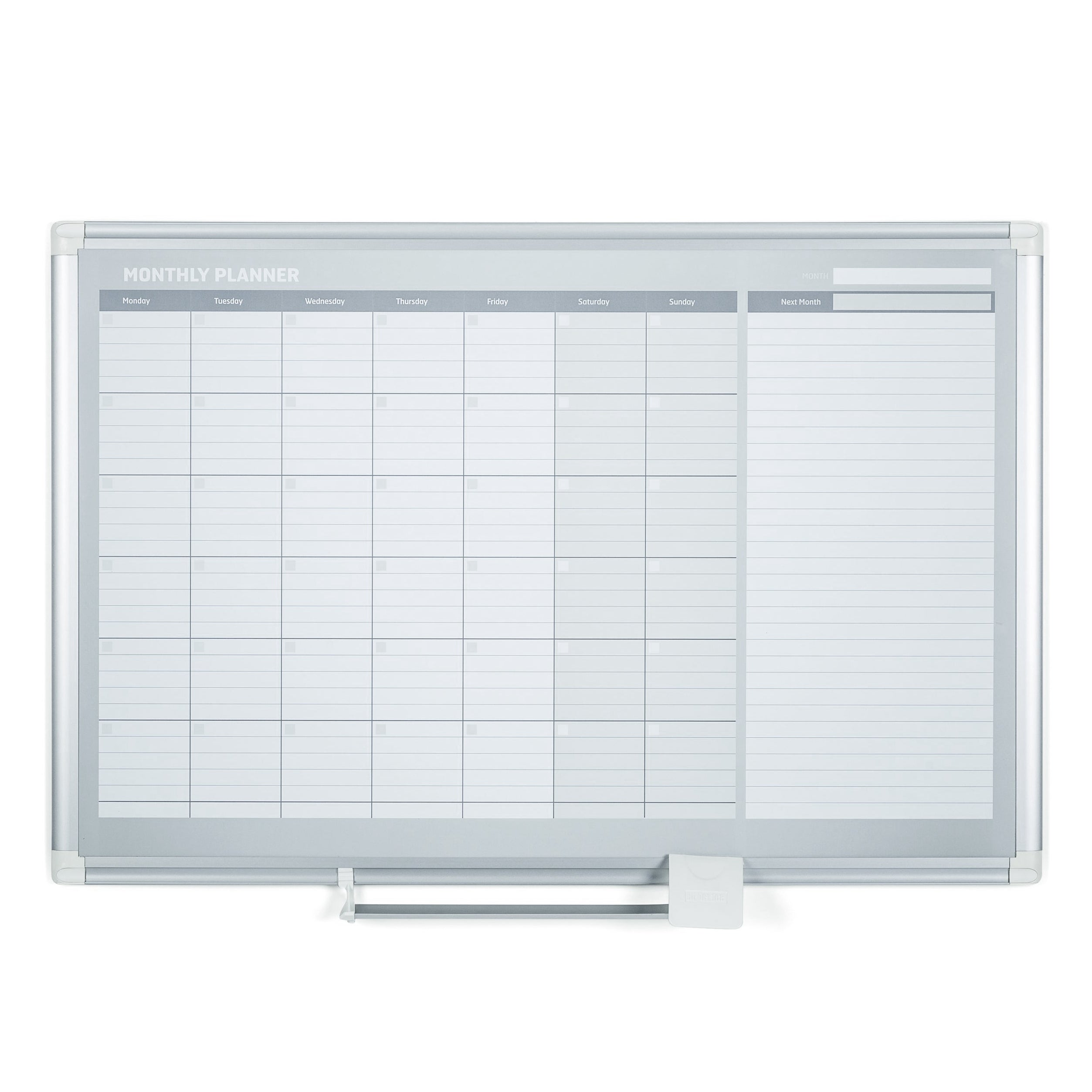 MasterVision Magnetic Steel Dry-Erase Monthly Planner, 36" x 48", Aluminum Frame